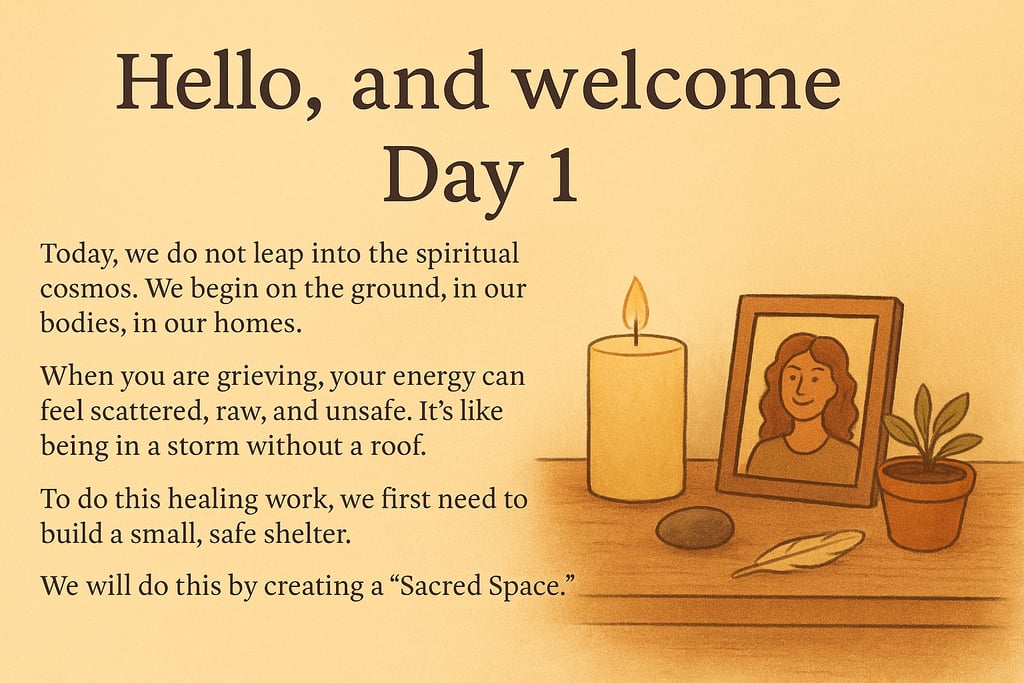 Hello, and welcome to Day 1. Today, we do not leap into the spiritual cosmos. We begin on the ground, in our bodies, in our homes.
